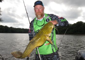 Capt. David Magness of Hernando, Mississippi hoists a fat Mississippi River blue cat into the boat. He caught it using basic spring fishing techniques. (credit: Keith Sutton) Catfish Basics #165—with...