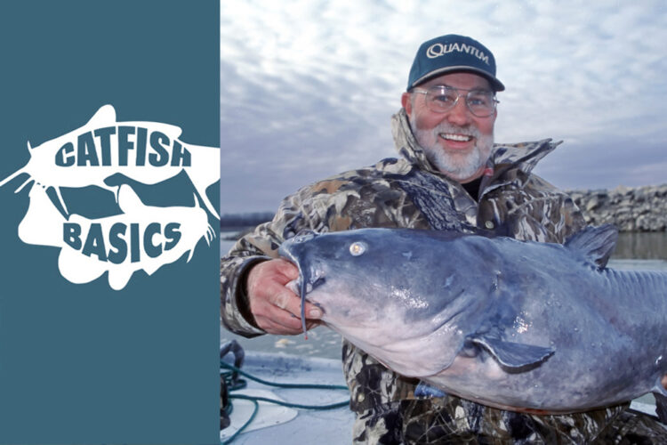Blue cats cruise these holes and eat anything that comes past in the current. Shad are harder to obtain these days since Asian carp have destroyed the food and locations they prefer, but I have always loved fresh ones for bait in the winter and like to fish them using a simple three-way-swivel rig. The two-foot hook leader is tipped with a 3/0 to 7/0 circle hook, and the 8-inch weight leader is tied to a sinker sizeable enough to keep the rig on bottom. The tackle we use is standard gear necessary for landing these hard-fighting brutes in the Mississippi’s heavy current: 7-foot-plus, medium- to heavy-action rods with soft tips for detecting bites and heavy butts for strength; big, large-capacity baitcasting reels; heavy line, big sinkers and big hooks.