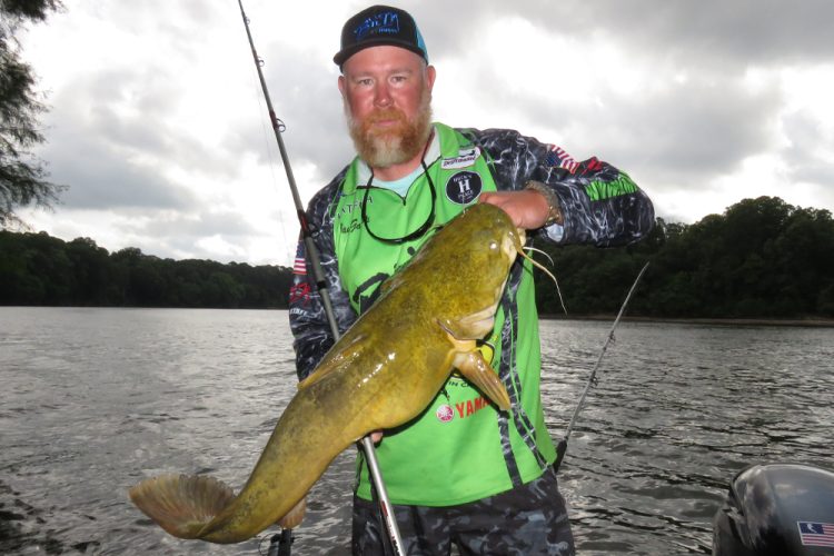 I usually look for submerged trees that have toppled off the banks, with the top of the tree in the water and the root ball still out the water. In a situation like that, the water doesn’t have to be deep. Catfish, especially flatheads, will venture into shallower water in search of baitfish that tend to hang out around brush tops.