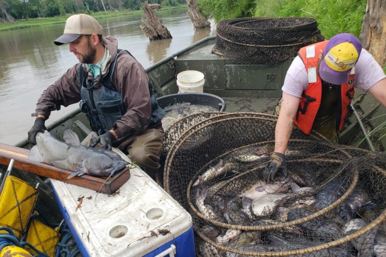 Workers from the Minnesota DNR collect data to assess the Red River’s population