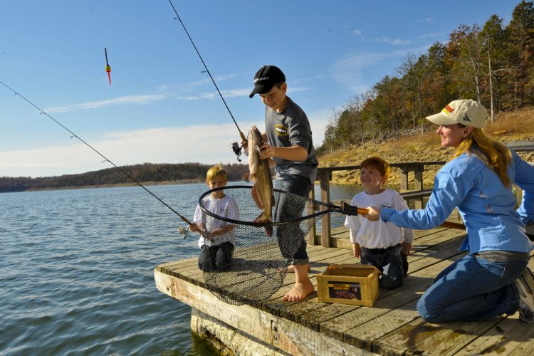 Making memories: A mother and her three sons enjoy a fun day of catfishing on the lake.