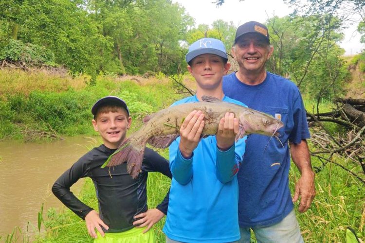 The South Fork of the Solomon near where it meets with Waconda Lake (or Glen Elder as it often is called) is just a tame prairie stream. It has suffered during recent drought years, dropping to just a couple feet deep in spots. But the channel cats hold in the holes, and that’s where the family fishes.