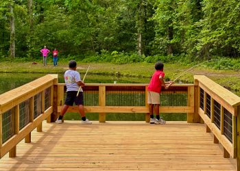 These kids are learning how to fish in the Alabama Nature Center’s catfish pond during a school field trip. Alabama...