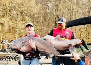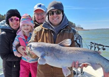 Joe Bragg’s guide clients, even families with young ones, learn that blue catfish will bite in the cold of winter....