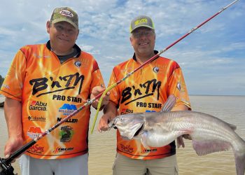 B ‘n’ M Pro Staff team Michael Haney (left) and Rodney Crimm display a catfish Haney caught on Grenada Lake while pulling planer boards through submerged timber. Catfish Bonanza: ...