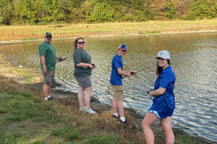 Dustin, Holly, Austin and Kaitlyn during a regular fishing outing as a family at South Lakes Park neighborhood pond in Denton, Texas. (Photo by Holly Dollar)